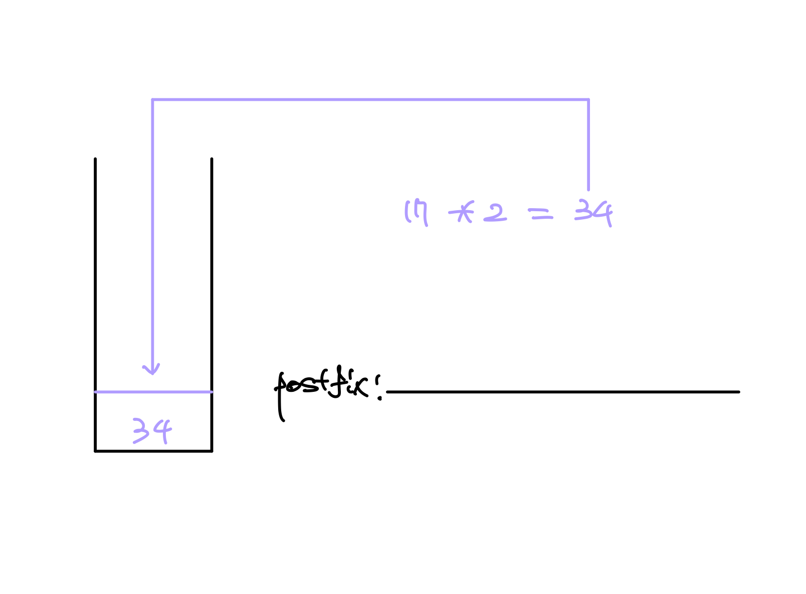 자 드디어 마지막 단계이다. 마지막으로 만난 연산자를 위해 2와 17을 순서로 꺼내 결과값을 다시 넣어주자. 다음과 같은 상황이 될 것이다.