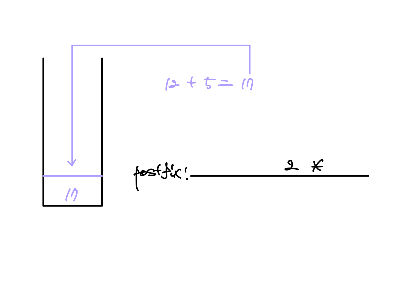 - 연산자가 나오면 스택에서 두개의 피연산자를 꺼내 계산한다.